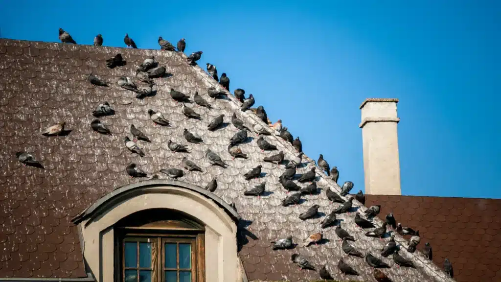 Oltre ai rischi per la salute, il guano dei piccioni è altamente corrosivo e può danneggiare la struttura degli edifici, inclusi tetti, cornicioni, balconi e pavimenti. Inoltre, i piccioni tendono a nidificare in spazi difficili da raggiungere, come i tetti e i sottotetti, causando ostruzioni nelle grondaie e nelle condutture, con il rischio di infiltrazioni d’acqua che danneggiano ulteriormente la struttura dell’edificio.